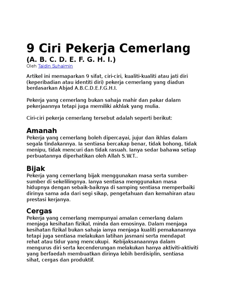 Ciri Ciri Pekerja Cemerlang Pdf