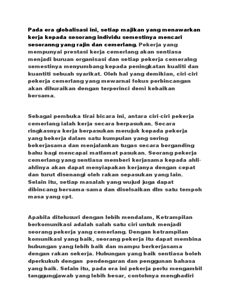 Ciri ciri pekerja cemerlang karangan ipah docx pada era globalisasi negara kita malaysia sangat memerlukan pekerja yang cemerlang untuk berkhidmat demi negara.